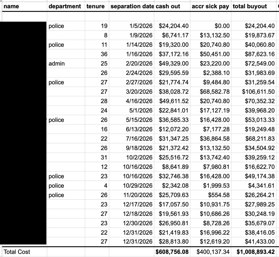 Costs are certain. Savings are assumed. Ebner highlighted “the current state of city’s … recruiting abilities” as a reason to rely on natural and staggered turnover rather than incentivizing early retirement. But, that was not the decision of the city council. Now, the city will need to pay out over $600,000 in incentives in addition to accrued sick pay of over $400,000. During the fiscal year, $1.8M in the hole, city council members Dan Gookin, Dan English, Christie Wood, Amy Evans, Kenny Gabriel, and Kiki Miller have guaranteed additional expenses of over $1,000,000. This is a costly attempt at savings. And, our analysis does not even account for the cost of turnover, staff time to interview, onboard, orient, and train replacements for outgoing staff. Council will finalize the decision at the council meeting, Tuesday, December 16, 2025.